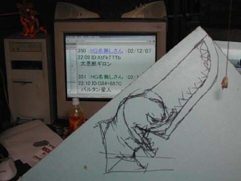 「99の指定した頭部ヘッドを100がスクラッチ(2個目) 」での自己申告(>>326)で、350で出たお代が「大悪獣ギロン」となりましたので、怪獣造形にトライしました。