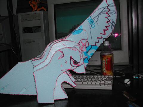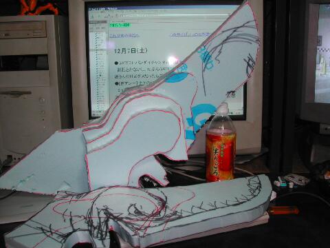 主材料になるスタイロフォームに描込みましたが、スケッチ自体は切り出しの「型」として使ったので、スタイロフォームに書く必要は無かったかも。