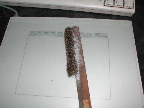 ワイヤブラシで削ると表面がケバ立つので、ライターの火で軽くあぶったり、ペーパーヤスリで軽く磨く。発泡スチロールにペーパーかけると、摩擦熱で熱くなるよねぇ・・・